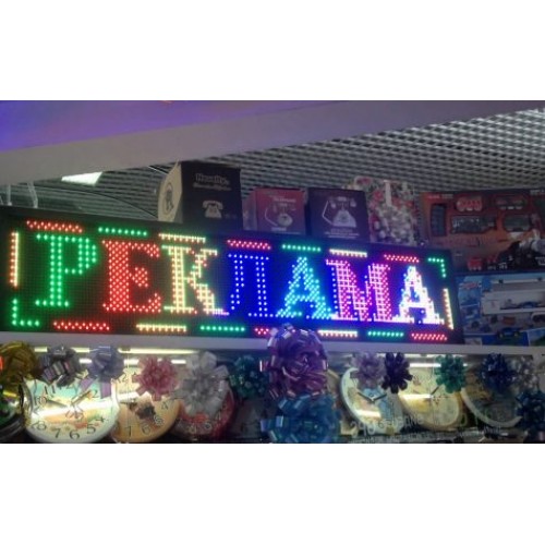 Светодиодное табло-бегущая строка относится к малогабаритным микропроцессорным информационным системам с питанием от сети напряжением 220 В, способным воспроизводить тексто-графическую информацию и проигрывать анимационные ролики.