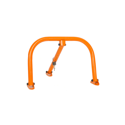Изделие представляет складной механизм, поднимающийся и опускающийся в ручном режиме. Запирание происходит с помощью навесного замка. Цвет – оранжевый глянец. При заказе от 100 шт. может быть любым. Тип управления – ручное складывание, запирание на навесной замок. Комплектность поставки – блокиратор, замок с тремя ключами, пластиковые заглушки.