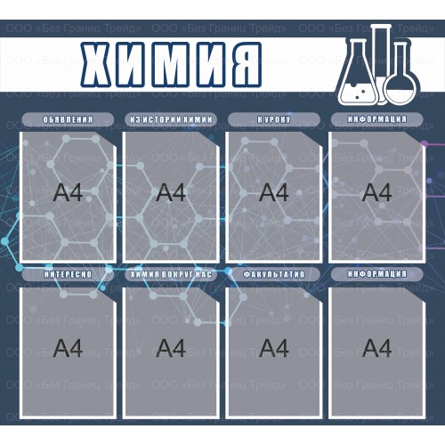 Стенд изготовлен из пластика ПВХ 4 мм, пленки с полноцветной печатью.
