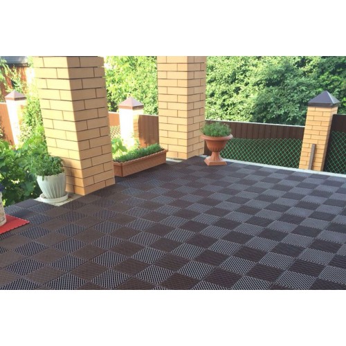 Даже после дождя покрытие остается практически сухим, так как вода не скапливается на поверхности благодаря дренажной структуре модулей.