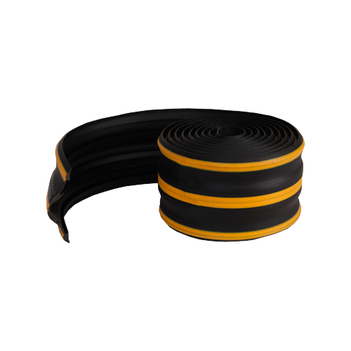 Демпфер поставляется в рулонах по 5 МЕТРОВ, что значительно упрощает их монтаж на длинные стены или колонны. Больше никаких световозвращающих наклеек, только окрашенная резина, которая намертво сидит в демпфере, это в свою очередь продлевает срок службы изделия на многие и многие года. Материал – ударопрочная резина с тремя продольными полосами из желтой резины.
