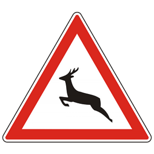 Предупреждает водителя о том, что он подъезжает к участку дороги, где на дороге могут внезапно появиться дикие животные.