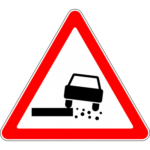 Предупреждает водителя о том, что съезд на обочину на данном участке дороги может быть опасным. На обочине может быть мягкий грунт, в котором легко увязнет автомобиль, могут вестись ремонтные работы или обочина находиться в аварийном состоянии. Также обочина может быть опасной из-за природной структуры: овраг, обрыв, кювет и т.д.