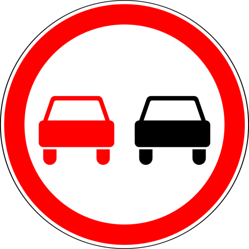 Запрещает обгон всех транспортных средств, но допускает в зоне своего действия обгон двухколесных мотоциклов без коляски, а также мопедов, гужевых повозок и тихоходных транспортных средств.