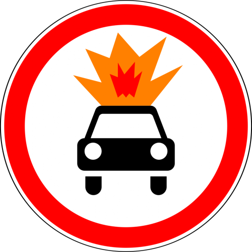Дорожный знак 3.33 "Движение транспортных средств с взрывчатыми и легковоспламеняющимися грузами запрещено"
