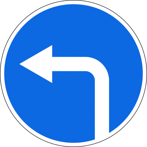 Обязывает водителей двигаться только в том направлении, которое изображено на знаке (только налево или разворот), за исключением маршрутных транспортных средств. Поворот налево должен осуществляться из крайнего левого ряда.