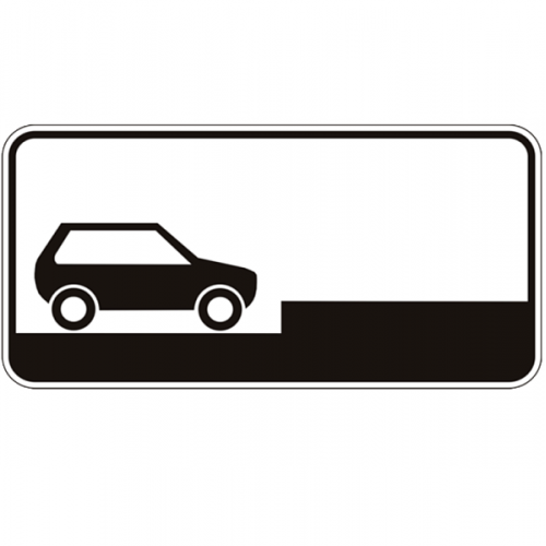 Указывает способ постановки легковых автомобилей и мотоциклов на околотротуарной стоянке. Стоянка на краю тротуара, граничащего с проезжей частью, разрешается только легковым автомобилям, мотоциклам, мопедам и велосипедам.