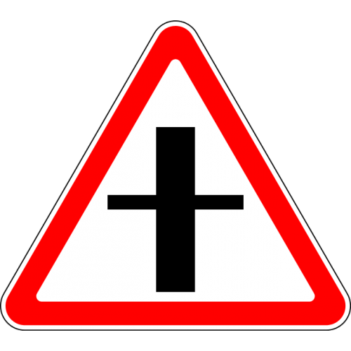 Предупреждает водителя, что он приближается к перекрестку по главной дороге, а дороги слева и справа являются второстепенными.