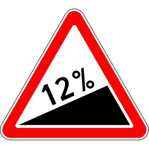 Цифрами указывается уклон в сотых долях. Если уклон обозначен знаками 1.13 или 1.14, то в случае затруднённого встречного разъезда уступить дорогу должен водитель, движущийся на спуск.
