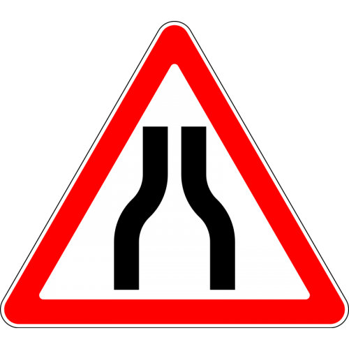 Сужение дороги с обеих сторон. Вне населенных пунктов знак устанавливают также перед мостовыми сооружениями и тоннелями, если ширина проезжей части в пределах искусственного сооружения равна или меньше, чем на подходах к нему, а в населенных пунктах - меньше, чем на подходах к нему.