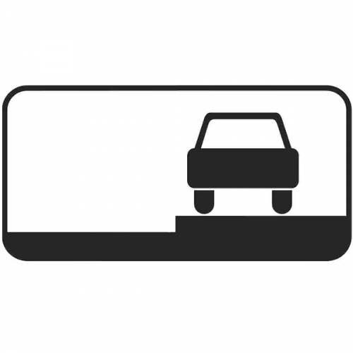 Указывает способ постановки легковых автомобилей и мотоциклов на околотротуарной стоянке. Стоянка на краю тротуара, граничащего с проезжей частью, разрешается только легковым автомобилям, мотоциклам, мопедам и велосипедам.