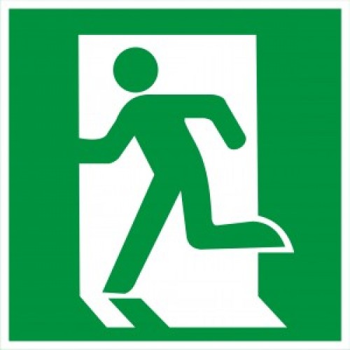 Над дверями (или на дверях) эвакуационных выходов, открывающихся с левой стороны. На стенах помещений вместе с направляющей стрелкой для указания направления движения к эвакуационному выходу.