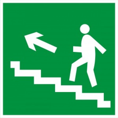 Е16 "Направление к эвакуационному выходу по лестнице вверх"