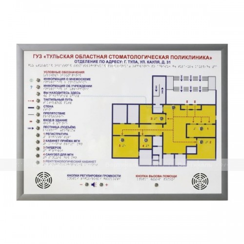 Настенная тактильно-звуковая мнемосхема со встроенной индукционной системой и интегрированной кнопкой вызова помощи