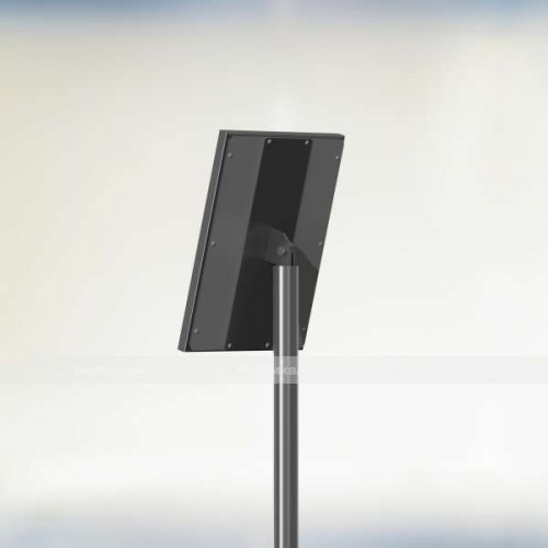 Стойка представляет собой сборно-разборную конструкцию, выполненную в антивандальном исполнении из конструкционной стали, что позволяет устанавливать стойку в местах с большой проходимостью людей. С целью обеспечения максимально комфортабельных условий, для восприятия информации всеми категориями МГН, изделие оборудавано поворотным механизмом, позволяющим пользователю самостоятельно зафиксировать информационное поле под комфортным для чтения углом наклона. Монтаж стойки осуществляется посредством бетонирования.