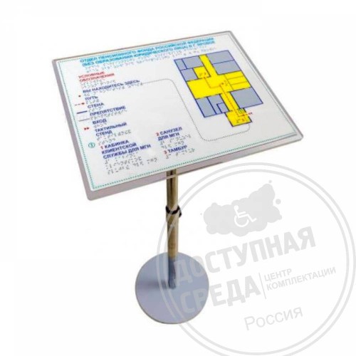 Стойка предназначена для размещения тактильной мнемосхемы в доступной зоне для всех категорий МГН.