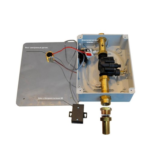 Устройство снабжено инфракрасным фотоэлементом с ограниченной зоной, с целью избежать ложных срабатываний. Имеется возможность изменять чувствительность фотоэлемента. Сигнал захвата появляется после присутствия человека свыше 5 секунд. После ухода человека включается поток воды.