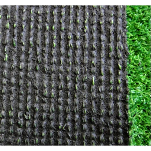 Выполнен с дренажной системой. Имеет отличный внешний вид, травинки практически не отличаются от натурального газона.