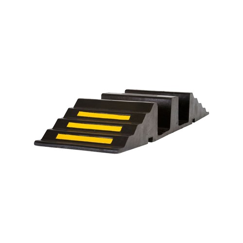 Формовое изделие из резины. Предусмотрены соединители типа "косточка". На поверхности имеются световозвращающие элементы для улучшения видимости в темноте. Необходимая длина кабель-канала набирается путем соединения нужного количества элементов. Подходит для прокладки пожарного шланга.