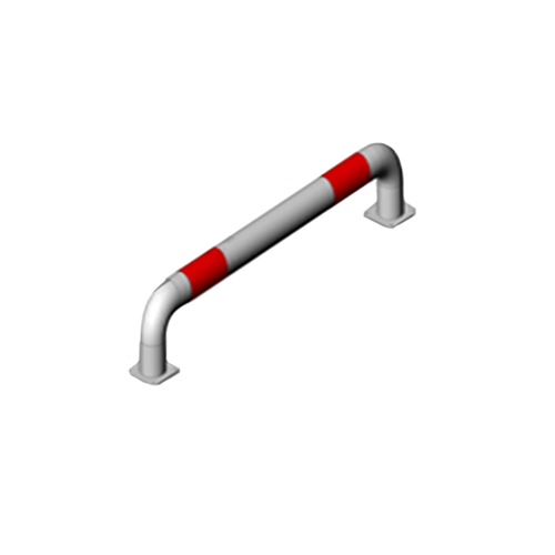 Покрытие – цинковый порошковый грунт + порошковая краска. 2 светоотражающих наклейки. 8 крепежных отверстий. Цвет и структура поверхности в серийном производстве – серебристый глянец (при заказе от 50 штук может быть любым). Изготовлен из черной трубы. Ножки на сварном соединении. С концов приварены отводы с фланцами.