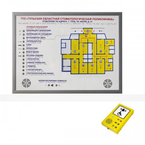 Комплект: настенная тактильно-звуковая мнемосхема и устройство активации с речевым подтверждением