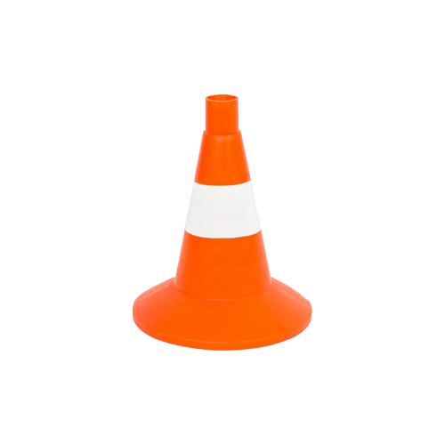 Конус ярко-оранжевого цвета, отличная видимость на дороге.