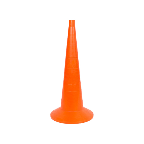 Конус ярко-оранжевого цвета, отличная видимость на дороге.