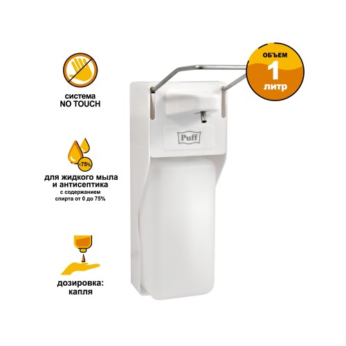 Локтевой дозатор PUFF-8190 для жидкого мыла и антисептиков (капля) антивандальный, 1000 мл