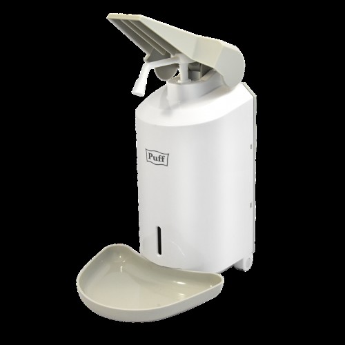 Локтевой дозатор PUFF-8193 для жидкого мыла и антисептиков (спрей/капля) с каплесборником (1000мл) настольный