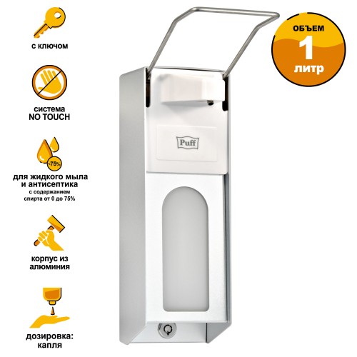 Локтевой дозатор PUFF-8199 (1 л) для жидкого мыла и антисептиков (капля) антивандальный с замком
