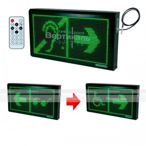 Удобно использовать, если маршруту МГН периодически меняют направления, например, через зимний и летний вход в здание, ели есть необходимость удаленно менять отображающие пиктограммы на маяке. Информация загружается при помощи USB-флеш карты. Пиктограммы загружаются посредством специального программного обеспечения, которое можно скачать в разделе «техподдержка». Смена информации происходит циклически.