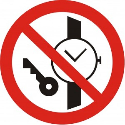 P27 "Запрещается иметь при (на) себе металлические предметы (часы и т.п.)"