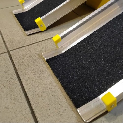 Трехсекционный телескопический пандус АНТИСЛИП изготовлен из облегчённого алюминиевого профиля и представляет собой 2 аппарели с абразивным покрытием черного цвета. Мы предлагаем нашим клиентам 3 варианта цвета покрытия - стандартный чёрный, практичный серый, контрастный жёлтый. Эта самая популярная модель среди телескопических пандусов предоставляет возможность для человека на инвалидной коляске и мамочке с детской коляской преодолеть практически любые перепады высоты: бордюры, пороги, ступени и не только.