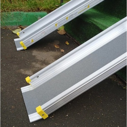 Трехсекционный телескопический пандус АНТИСЛИП изготовлен из облегчённого алюминиевого профиля и представляет собой 2 аппарели с абразивным покрытием серого цвета. Мы предлагаем нашим клиентам 3 варианта цвета покрытия - стандартный чёрный, практичный серый, контрастный жёлтый. Эта самая популярная модель среди телескопических пандусов предоставляет возможность для человека на инвалидной коляске и мамочке с детской коляской преодолеть практически любые перепады высоты: бордюры, пороги, ступени и не только.