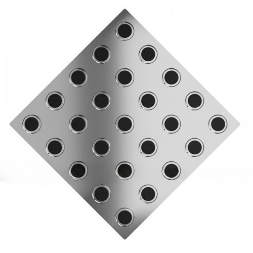 Плитка тактильная (конусы линейные, преодолимое препятствие) нержавеющая сталь AISI 304, 300х300х6 мм, черные вставки