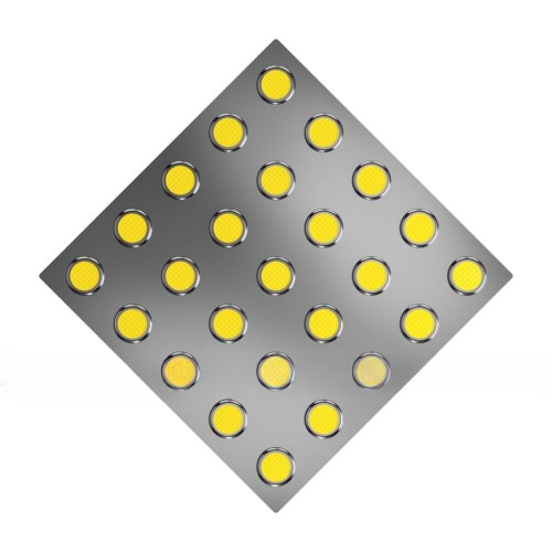 Плитка тактильная (конусы линейные, преодолимое препятствие) нержавеющая сталь AISI 304, 300х300х6 мм, желтые вставки