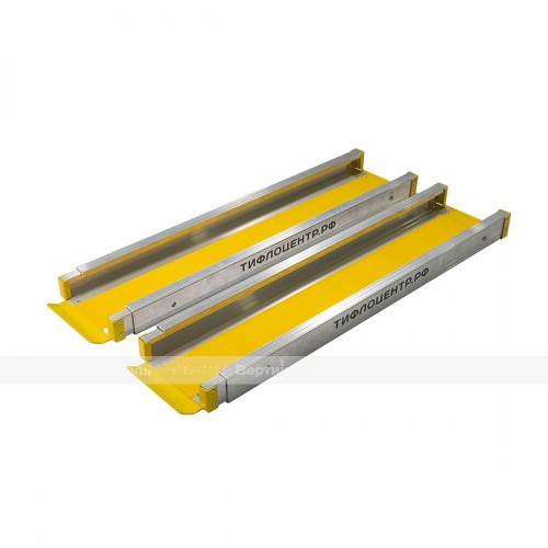 Рампы выполнены из высокопрочного алюминия. Площадки для въезда/съезда изготовлены из стали, толщиной не менее 2мм и окрашены порошково - полимерным способом. Рабочая сторона рамп оборудована бортиками безопасности и противоскользящей, влагоустойчивой лентой. Наличие площадок для свободного съезда/заезда, оборудованных противоскользящими накладками, обеспечивает надёжную фиксацию при установке. Наличие фиксаторов, обеспечивает надежное скрепление и фиксацию секций при раскладывании рампы. Конструкция рамп отличается легкостью и не требует специальной установки.