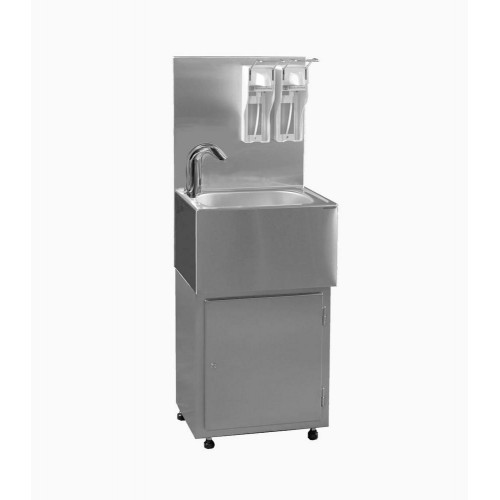 В процессе исключается контакт загрязненных рук с элементами конструкции. Это достигается применением локтевых дозаторов жидкого мыла и дезраствора, а также фотоэлектрического датчика включения воды. Включение подачи воды осуществляется при внесении рук в зону мойки. Кран снабжен антивандальной системой.Конструкция: