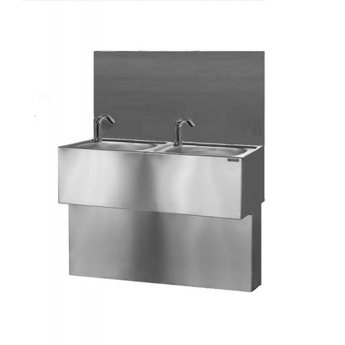 Сенсорный умывальник Ф5 со стенкой, навесной, сдвоенный с корзиной