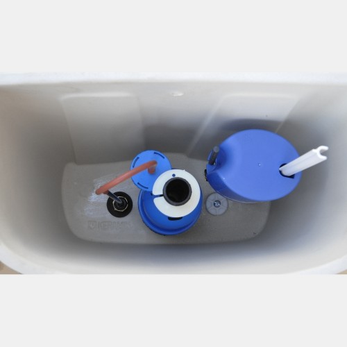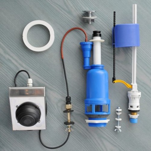 педаль, в которую встроен насос, соединена с пневматическим исполнительным механизмом клапана бачка при помощи ПХВ трубки. Предлагаемый комплект содержит все необходимые компоненты для замены обычной арматуры сливного компакт-бачка.