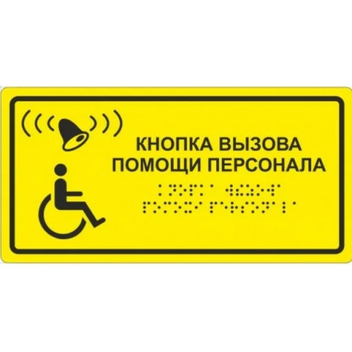Тактильная табличка со шрифтом Брайля "Кнопка вызова помощи персонала", 200х150 мм