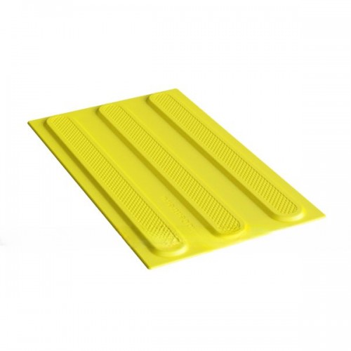 Такие наземные указатели дают возможность без труда идентифицировать их людьми, испытывающими проблемы со зрением, за счет контрастного эффекта. Это достигается с помощью обустройства на желтом основании индикаторов желтого цвета. Высота подъема тактильных рифов 4 мм.