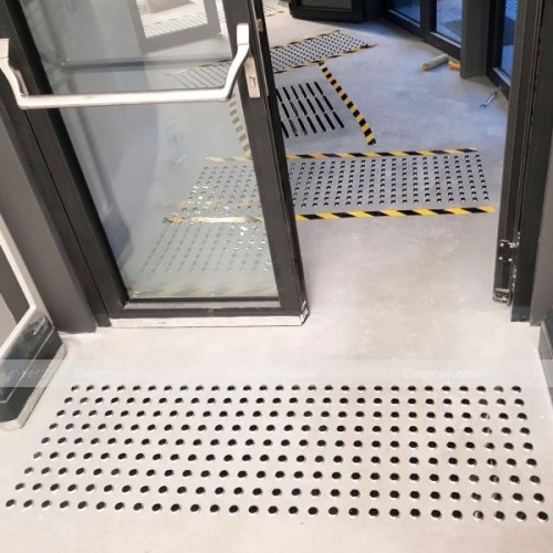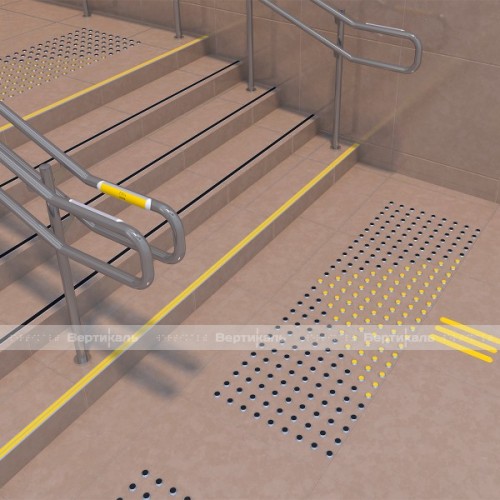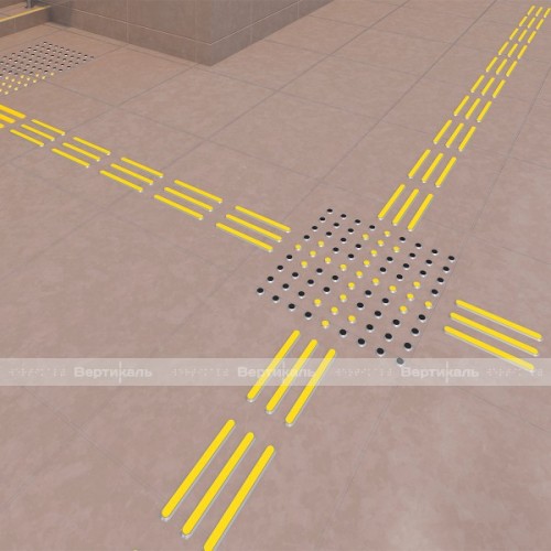 Новые усовершенствованные модели комбинированных индикаторов, изготовленные из алюминия с вставкой из полистирола, отличаются высокими антикоррозионными, а так же противоскользящими свойствами. Обладают высокой прочностью и эстетичностью исполнения. Являются достойной заменой тактильной плитки. Индикаторами в виде усечённых конусов обозначают зоны внимания и наличие преград на пути следования для людей с ограничениями зрения.