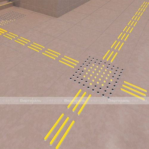 Новые усовершенствованные модели комбинированных индикаторов, изготовленные из алюминия с двусторонней вставкой из полистирола со штифтом, отличаются высокими антикоррозионными, а так же противоскользящими свойствами. Обладают высокой прочностью и эстетичностью исполнения. Являются достойной заменой тактильной плитки. Индикаторами в виде усечённых конусов обозначают зоны внимания и наличие преград на пути следования для людей с ограничениями зрения. Монтаж тактильного индикатора осуществляется путём сверления и последующего приклеивания индикаторов в подготовленные отверстия.