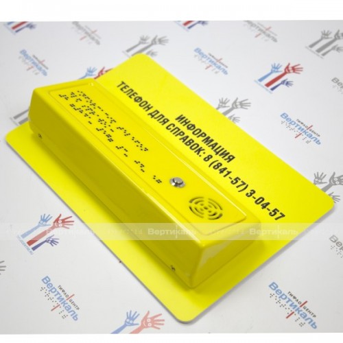 Табличка выполнена в цельнолитом защитном корпусе, что обеспечивает более комфортное тактильное восприятие информации тотально слепым и слабовидящими людьми.