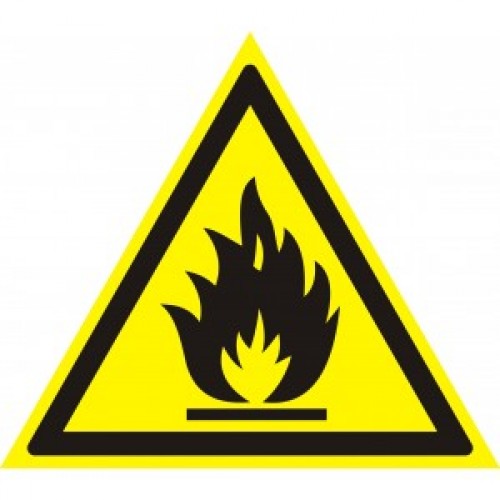 Используется для привлечения внимания к помещениям с легковоспламеняющимися веществами. На входных дверях, дверцах шкафов, емкостях и т.д.